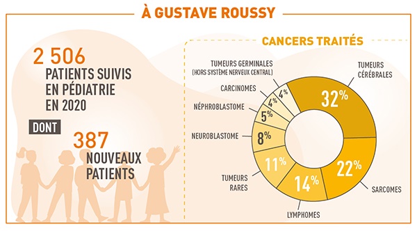 1re cause de décès par maladie chez l’enfant, le cancer frappe plus de 2 800 enfants et adolescents en France chaque année *. Acteur de référence mondial en oncologie pédiatrique, Gustave Roussy lançait il y a quatre ans la grande campagne "Guérir le cancer de l'enfant au 21e siècle" pour donner à la recherche les moyens d’atteindre cet objectif ambitieux qui nous concerne tous.